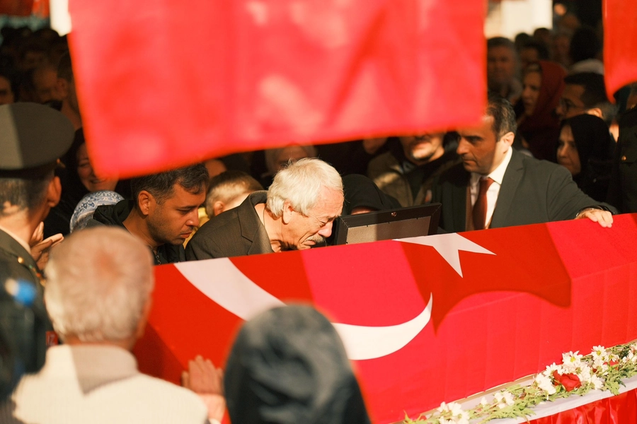 Gürcistan’da düşen askeri kargo uçakta şehit olan Hava Ulaştırma Uzman Çavuş Emre Sayın’ın (40) naaşı Balıkesir’de toprağa verildi. Şehit Emre Sayın’ın Türk bayrağına sarılı naaşı, cenaze töreninin yapılacağı Zağnos Paşa Camisi’ne getirildi. Şehidin babası Adem ve annesi Keziban Sayın gözyaşlarını şehit olan oğulları için akıttı. Şehidin eşi Zeliha Sayın ise ayakta durmakta zorlandı. Biri 3 aylık olan 3 çocuk sahibi Emre Sayın, Balıkesir İl Müftüsü Hasan Hayri Yaşar’ın kıldırdığı cenaze namazının ardından tekbirler eşliğinde Başçeşme Mezarlığı’na defnedildi. Törende gözyaşlarına boğulan şehidin 10 yaşındaki oğlu Adem Sayın’ı dedesi Adem Sayın ve İçişleri Bakan Yardımcısı Bülent Turan teskin etti.