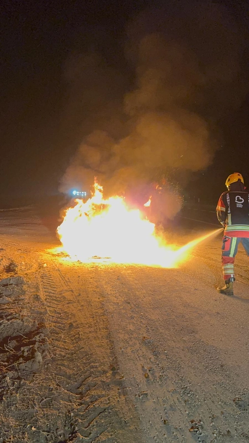 Bandırma-Manyas karayolu Kuşcenneti Kavşağı yakınlarında seyir halindeki bir araçta çıkan yangın, olay yerine sevk edilen itfaiye ekiplerinin hızlı müdahalesiyle kontrol altına alınarak söndürüldü.