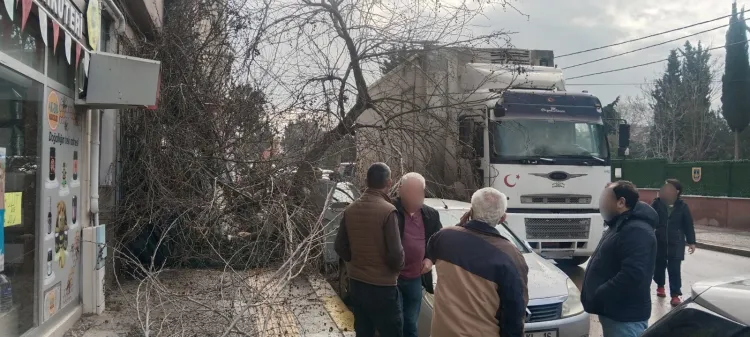 BANDIRMA’DA KAMYON ÇINAR AĞACINI DEVİRDİ
