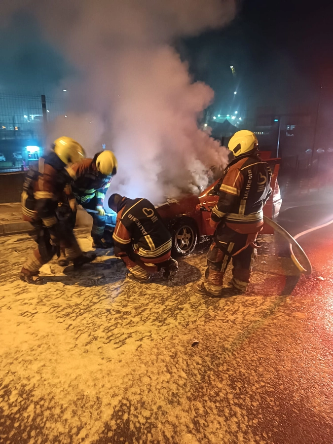 Bandırma Paşabayır Mahallesi Mehmet Akif Ersoy Caddesi’nde, gece saatlerinde seyir halindeyken bir otomobilin motor kısmında yangın çıktı.