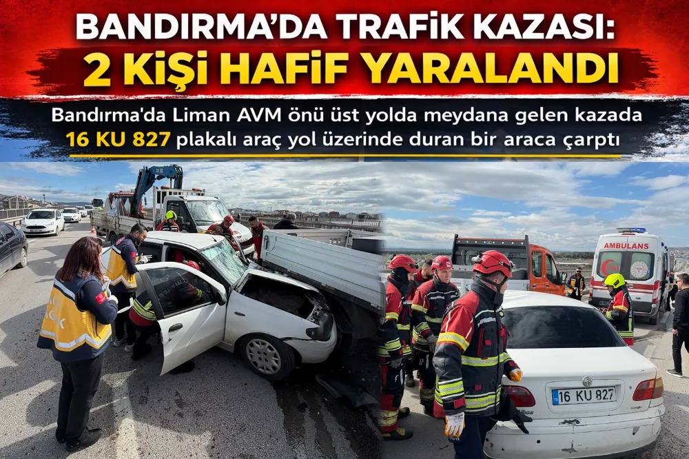 Bandırma ilçesi 17 Eylül Mahallesi Liman AVM önü üst yolda meydana gelen trafik kazasında iki kişi hafif yaralandı.