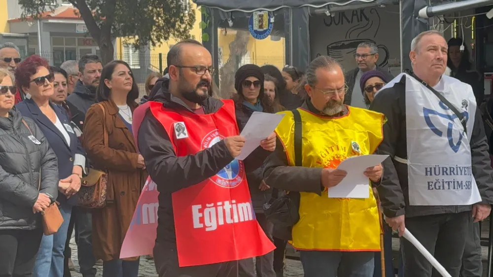Eğitim-İş Erdek Temsilciliği, Eğitim Sen Erdek Temsilciliği ve Hürriyetçi Eğitim Sen Erdek Temsilciliği tarafından yapılan ortak basın açıklamasında, okulların en güvenli alanlar olması gerekirken bugün güvensiz hale geldiği vurgulandı.