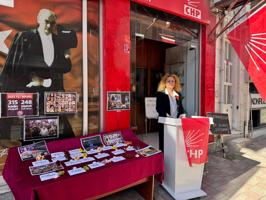 CHP Erdek İlçe Kadın Kolları Başkanı Gaye Özdiker okuduğu basın açıklamasında kadın cinayetlerinin kaynağının ‘erkek egemen zihniyet’ ve 'siyasi kararlar' olduğunu belirterek, “Katledilen tüm kadınlar için adalet sağlanana kadar durmayacağız. Şiddete mecbur değiliz” mesajı verdi.