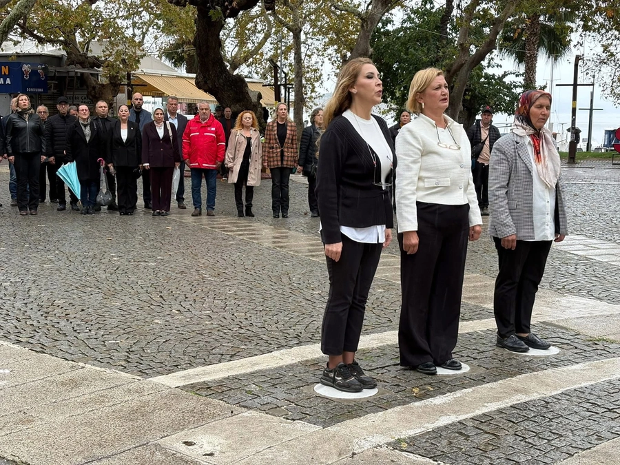 Törende, Erdek Muhtarlar Derneği Başkanı ve Sahil Mahallesi Muhtarı Semra Baycan, Karşıyaka Mahallesi Muhtarı Ayşe Ertürk ve Poyrazlı Mahallesi Muhtarı Nazan Alptekin tarafından Atatürk Anıtı’na çelenk sunuldu.
