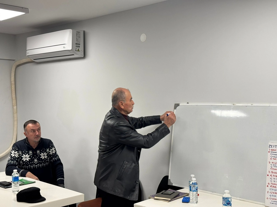Programın devamında Zirai Danışman Mehmet İzbak söz aldı. İzbak, zeytin bakımında yapılan yaygın hatalar, budama teknikleri, toprak tahlili, gübreleme ve hastalıklarla mücadele konularında üreticilere detaylı bilgiler verdi. Doğru zamanda ve doğru yöntemlerle yapılan bakımın ürün kalitesini doğrudan etkilediğini belirten İzbak, üreticilerin sorularını da yanıtladı.