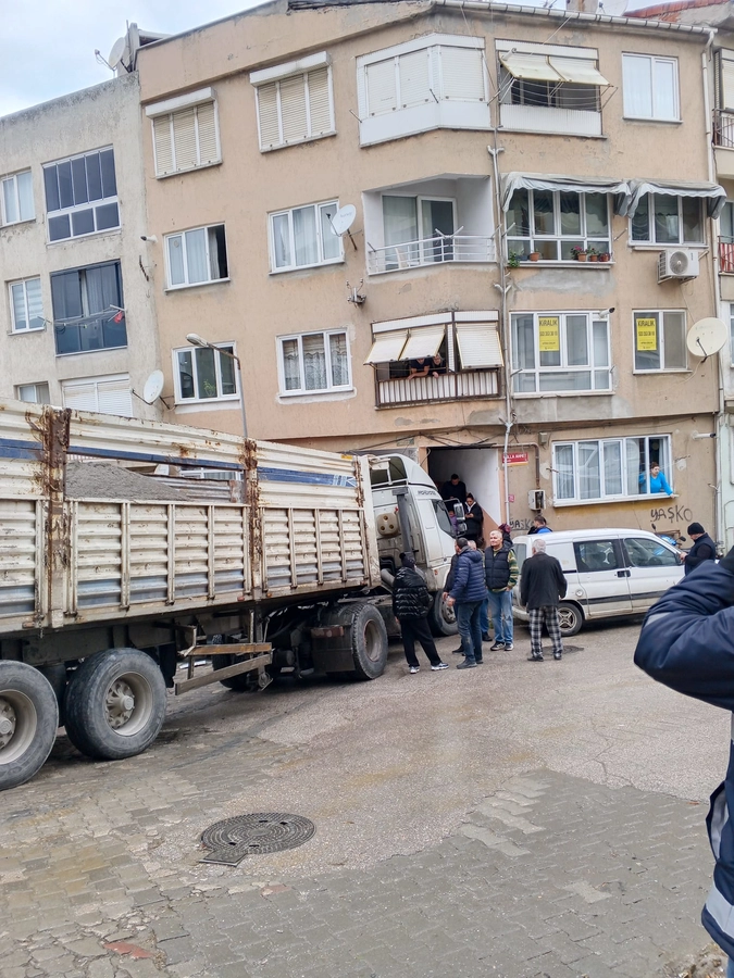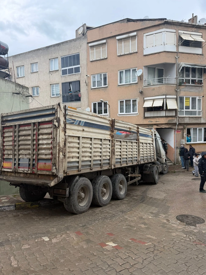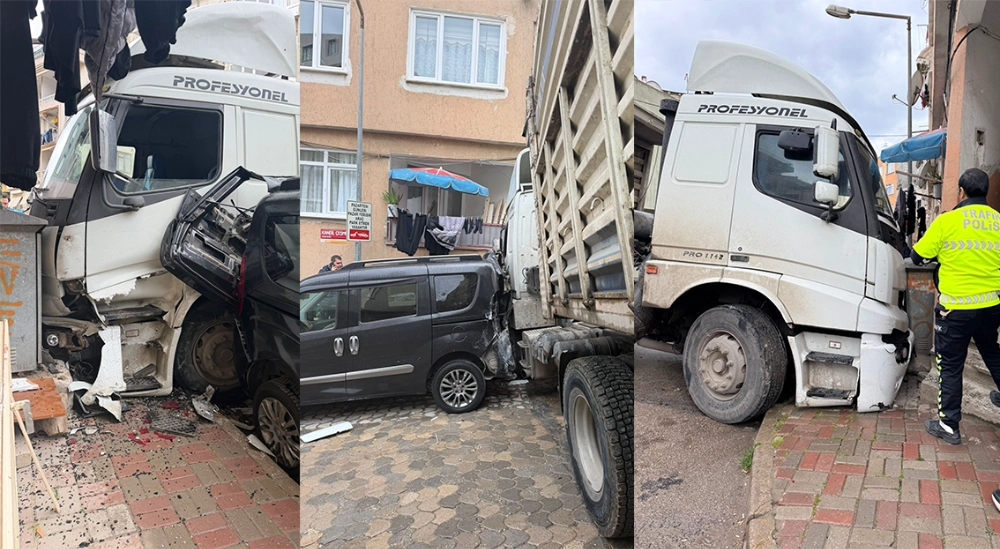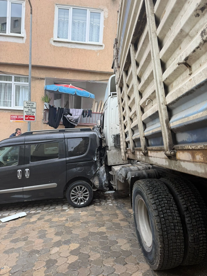 Atatürk Mahallesi Kandil Çeşme Sokakta yokuş aşağı inen kum yüklü kamyon, karşı yönden gelen araçla kafa kafaya gelme tehlikesi yaşayınca kontrolden çıktı. Kamyon önce park halindeki araca çarptı, ardından kaldırıma çıkarak elektrik trafosuna çarparak durdu.