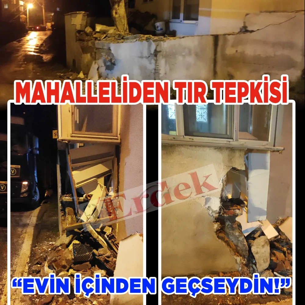 Keskin virajları ve dar sokaklarıyla bilinen mahallede, gece saatlerinde mahalle içinden geçmeye çalışan bir tırın manevra sırasında bir eve temas ettiği ve evin dış cephesinde zarar oluştuğu öğrenildi. Gürültüyle irkilen ev sahipleri büyük korku yaşarken, yaşanan olay mahallede tepkiye neden oldu.