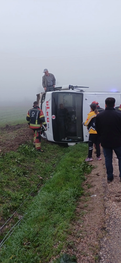 Bandırma ilçesinde lise öğrencilerini taşıyan servis midibüsü, yoğun sis nedeniyle şarampole yuvarlandı. Araçtaki 8 öğrenci hafif yaralandı.