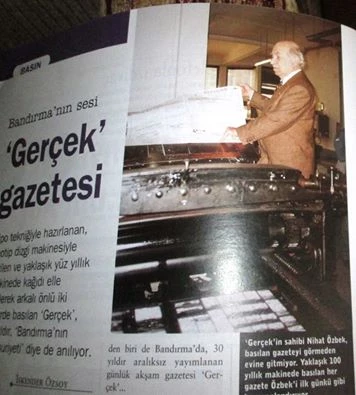 Nihat Özbek’in sahipliğinde, 1975-2006 yılları arasında, Bandırma’da günlük yayınlanan GERÇEK GAZETESİ’nin her kademesinde, aralıksız olarak görev yaptım. Bu gazetede son olarak da “Genel Yayın Yönetmenliği” ve “Yazı İşleri Müdürlüğü” görevlerini üstlendim. GERÇEK GAZETESİ, 2006 yılında, ekonomik sıkıntılar nedeniyle imtiyaz sahibi Nihat Özbek tarafından kapatılmak zorunda kalınca o da biz çalışanlar da çok üzüldük. Ama yapılacak bir şey yoktu.